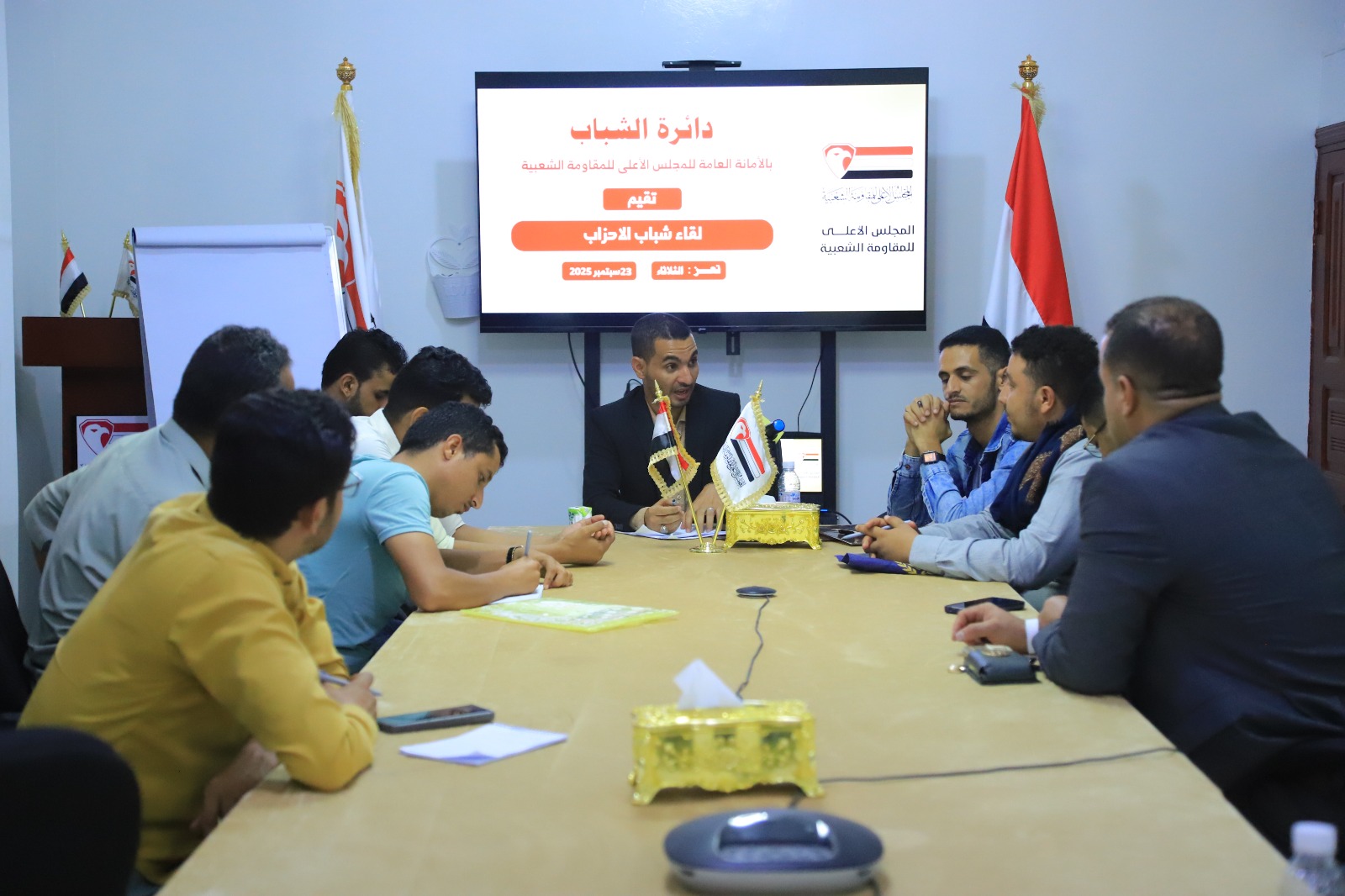 وفي سياق آخر، التقى منسق دائرة الشباب ماجد أحمد، شبابًا ممثلين عن عدد من الأحزاب في تعز، وذلك في مقر الأمانة العامة للمجلس الأعلى للمقاومة الشعبية.